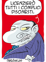 Il Capo ha infatti minacciato che d’ora in poi non coprirà più i cortigiani che rubano: grazie a lui “hanno avuto soldi e onori”, e se l’avidità li acceca li licenzierà in tronco e con ignominia. Come fa un Padrone, del resto, col maggiordomo che ruba le posate d’oro.
