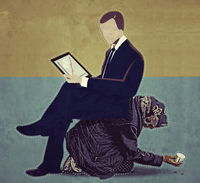 Un grande errore, fondamentale, resta il fatto che le misure quantitative monetarie adottate non tengono conto della differenza della condizione dei sessi. La condizione femminile non è affatto paragonabile a quella maschile. Ancora oggi, la cultura predominante attraverso il mondo, “ fatta e imposta dagli uomini” è che i due generi non sono differenti ma inuguali. Ora , le teorie e le pratiche legate al “principio dell’ineguaglianza” sono una delle principali fabbriche di creazione dei fattori strutturali dell’impoverimento. Il che spiega che il 70% delle persone povere sono donne. Il 78% delle persone analfabete sono donne. Le donne svolgono il 67% del lavoro e ottengono il 10% del reddito e compiono la gran parte delle attività necessarie alla sussistenza, come dettagliato nel volume “Le fabbriche della povertà” dai testi sull’argomento scritti da Patrizia Sentinelli.(14) La loro condizione è destinata a peggiorare ancora di più nel passaggio ad una economia monetaria, speculativa, globale. E’ noto che i denari li gestiscono gli uomini!
