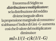 Con il teorema di Stiglitz viene inferto un altro duro colpo all’ortodossia liberista dominante ai tempi della grande crisi: se l’ indice di Gini (ovvero l’indicatore che misura la diseguaglianza) aumenta il «moltiplicatore» degli investimenti diminuisce e dunque il Pil frena. Ecco perché.