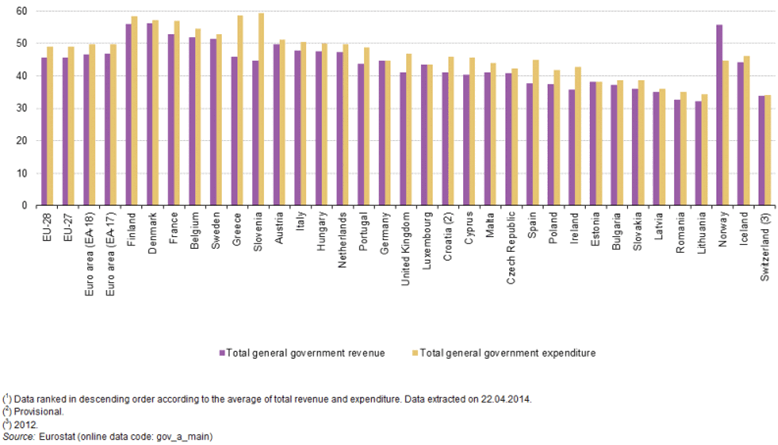 Figura 1: spesa pubblica in Italia e in Europa (fonte Eurostat)