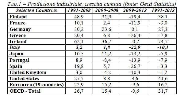 Tab.1 – Produzione industriale, crescita cumula (fonte: Oecd Statistics)