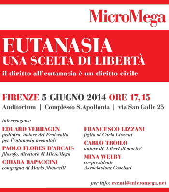 Il prossimo 5 giugno a Firenze MicroMega organizza un grande convegno per la libertà di scelta sul fine vita. Ci sarà anche Mina Welby, che oggi con una petizione online chiede ai presidenti delle Camere che la proposta di legge di iniziativa popolare per legalizzare l’eutanasia venga discussa in parlamento. Perché tutti abbiano diritto a una morte dignitosa.