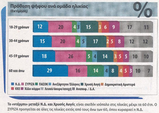 Commentando questi dati, Babis Papadimitriou – giornalista dell’emittente privato Skai TV decisamente pro-austerità – si è chiesto se non fosse il caso, per la destra greca “rispettabile”, di pensare ad un’alleanza con Alba Dorata: «Se SYRIZA può discutere la possibilità di fare una coalizione con il Partito Comunista, perché Nea Dimokratia non può fare altrettanto con un’Alba Dorata più seria?»
