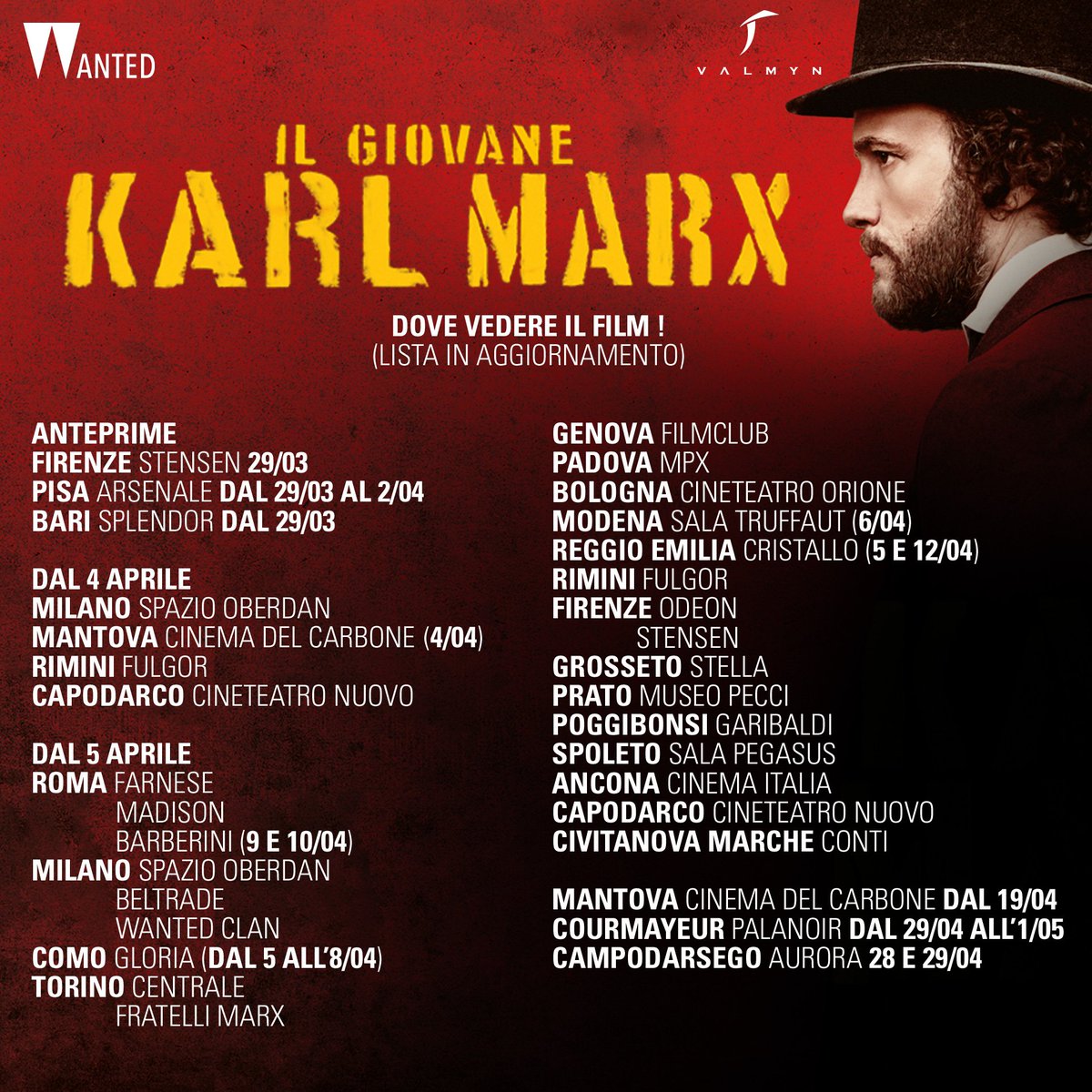 “Il giovane Karl Marx” di Raoul Peck è stato designato “Film della Critica” dal Sindacato Nazionale Critici Cinematografici (SNCCI) con la seguente motivazione: «Il regista haitiano Raoul Peck si muove sui binari del film biografico per riscoprire a 170 anni dalla sua stesura i motivi e le esperienze che spinsero Karl Marx e Friedrich Engels a pubblicare Il manifesto del Partito Comunista, sconvolgendo di fatto la realtà socialista e comunista per sempre. Un’opera che riscopre il valore didattico del cinema senza perdere mai di vista la passione narrativa e l’afflato dirompente della dialettica. Perché una rivoluzione è sempre una pietra che rotola».